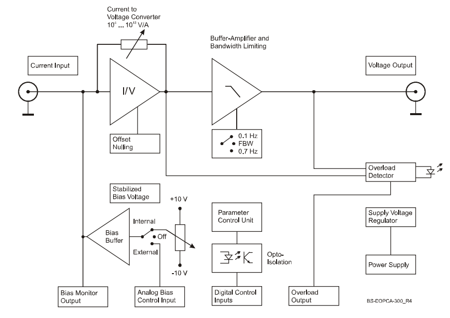 | Bias Voltage | ±10 V, max. 10 mA, connected to amplifier input, adjustable by trimpot or remote control voltage | |||||||||||